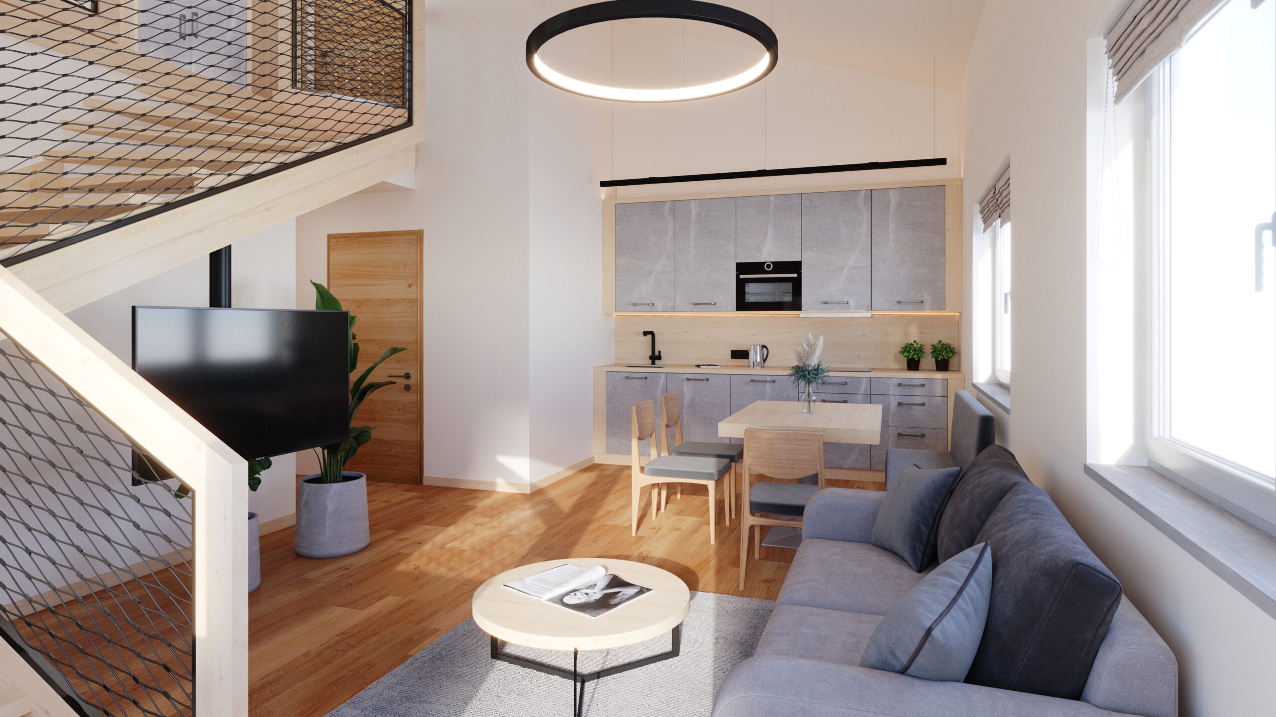 Geräumiges Appartement auf zwei Ebenen für 2–6 Personen – mit voll ausgestatteter Küche, zwei Bädern und Galerie-Schlafzimmer. Ideal für ganze Familien oder mit Freunden.